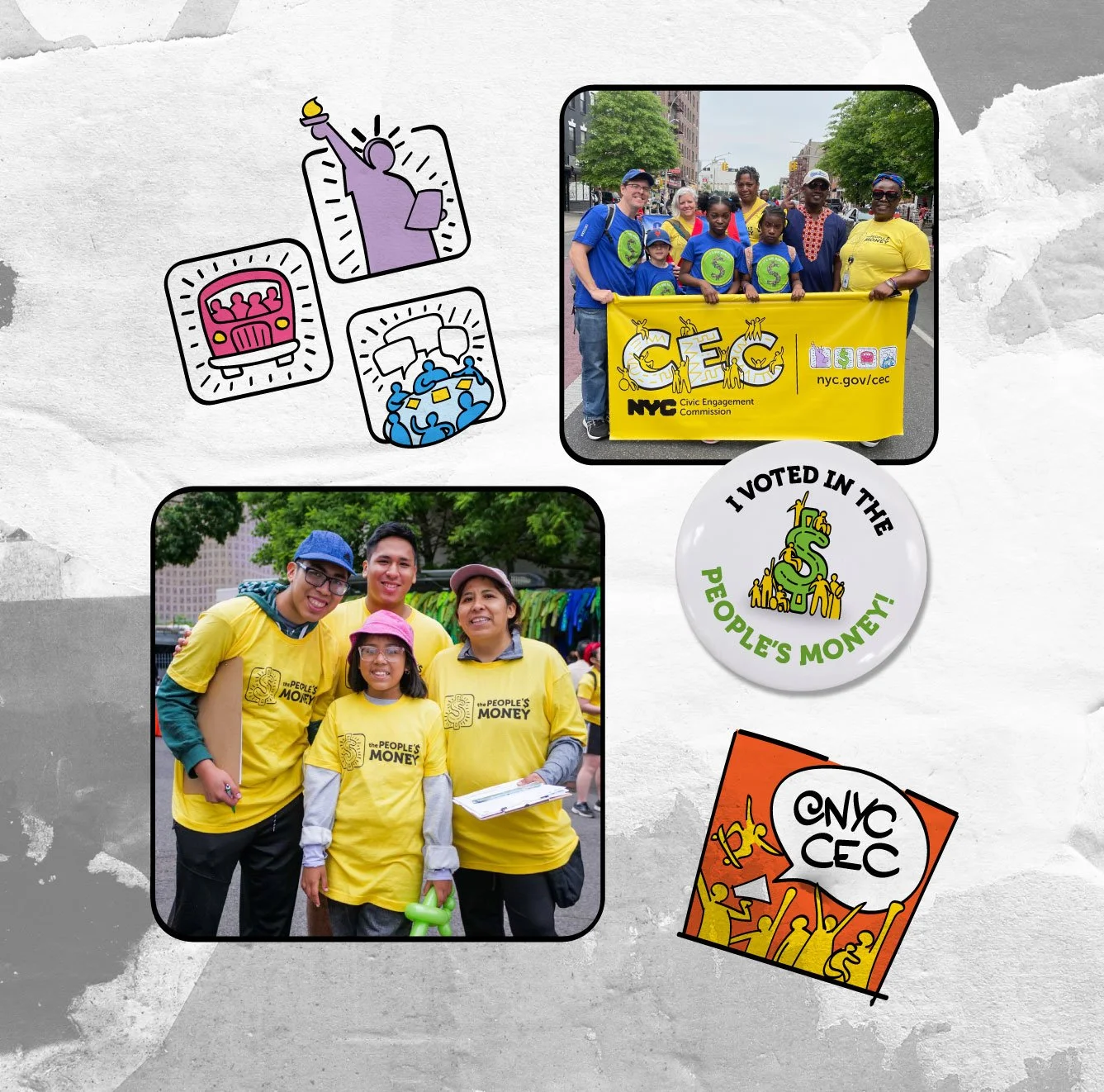 Working in a collaborative process with the NYC Civic Engagement Commission’s staff, we came up with an eye-catching, new brand identity inspired by NYC’s vibrant street art traditions. It’s a fresh new look that reimagines how a city agency presents itself. With a bright color scheme and playful, people-centric graphics, the new branding was implemented across print and digital media to promote New York City’s first-ever citywide participatory budgeting process: The People’s Money. Tens of thousands of New Yorkers, aged 11 and up, decided how to spend $5 million in city funds to address local community needs. The new branding also includes logos for the CEC programs Democracy NYC, Community Boards, The People’s Bus, Voter Language Assistance and the TRIE Neighborhood Initiative.